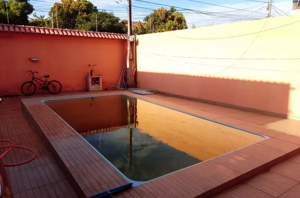 Área externa com churrasqueira, 2 banheiros e piscina (6 x 3 x 1,4)